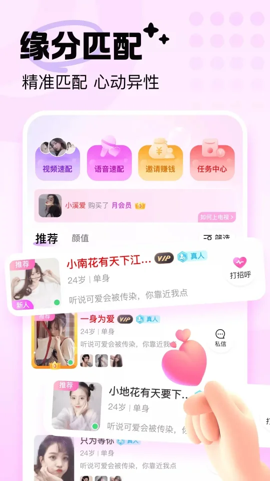 速配交友:基于用户的兴趣爱好和个人资料,系统会智能匹配最适合的潜在好友,让用户能够快速找到志同道合的人。