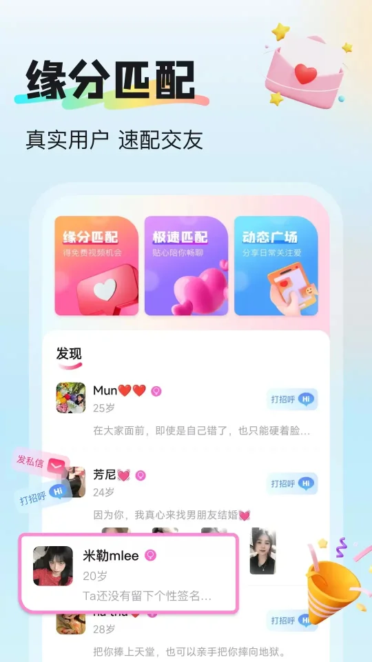 浪漫约会:独特的极速约会功能,让用户能够迅速找到心仪的对象,享受浪漫时光。